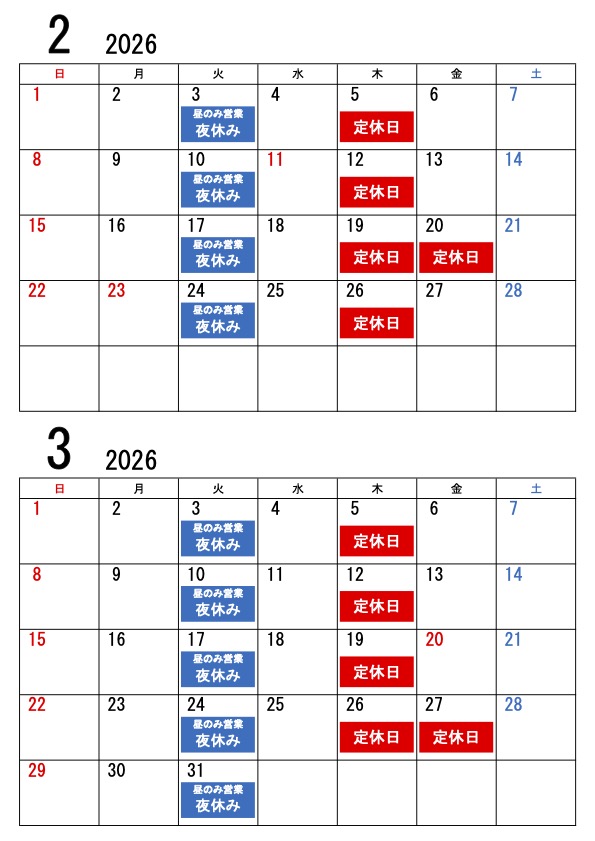 ※毎週火曜は昼の部のみ営業