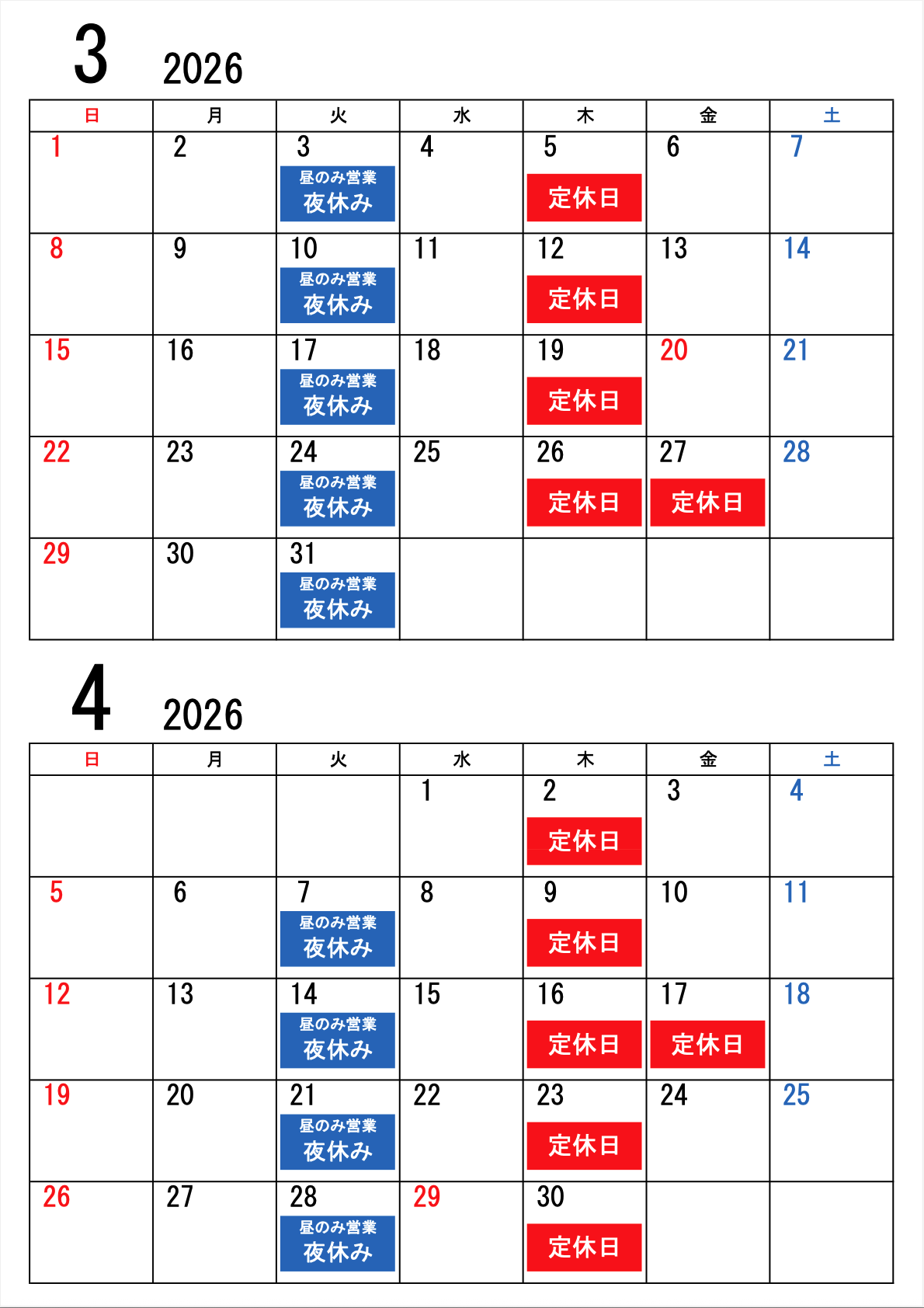 定休日